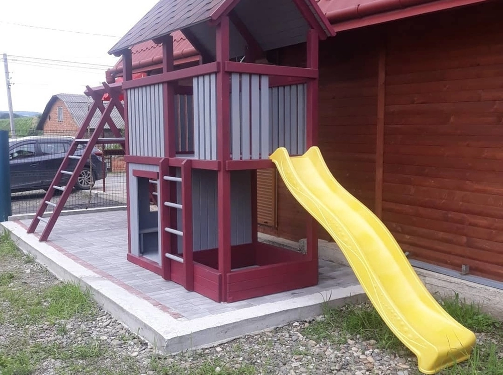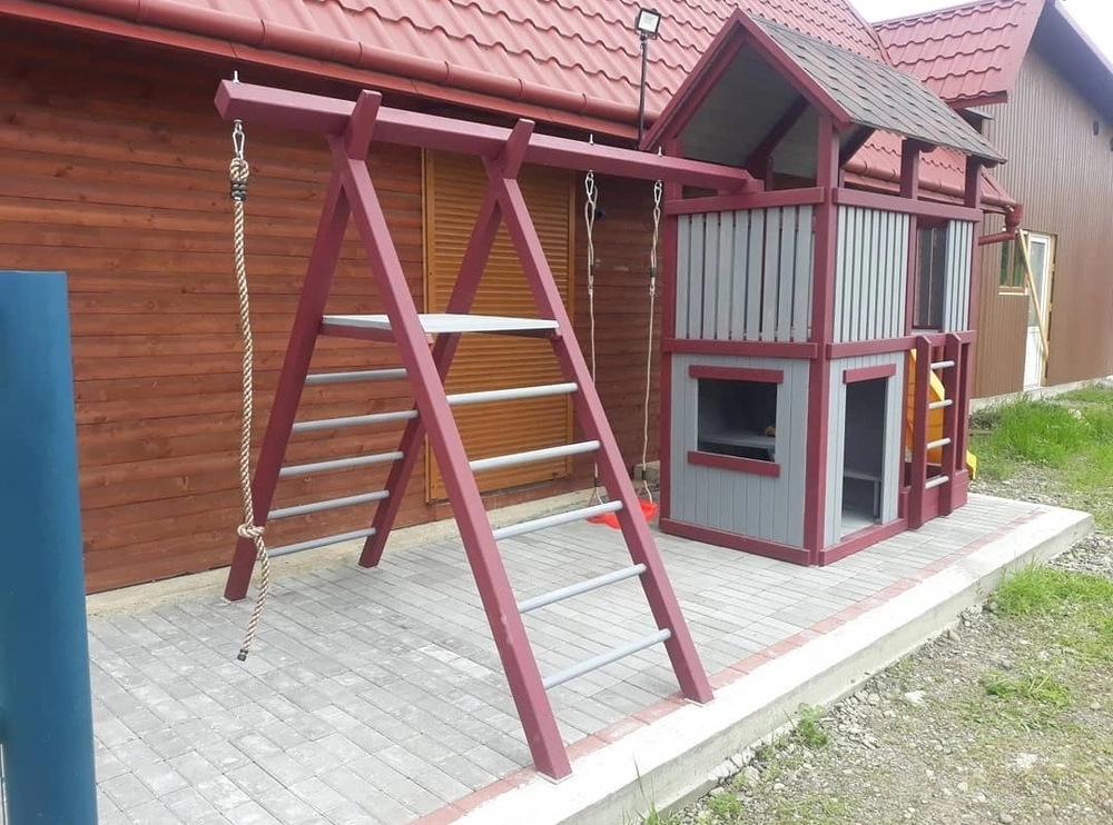 - Канат , гойдалка, гірка в комплекті.