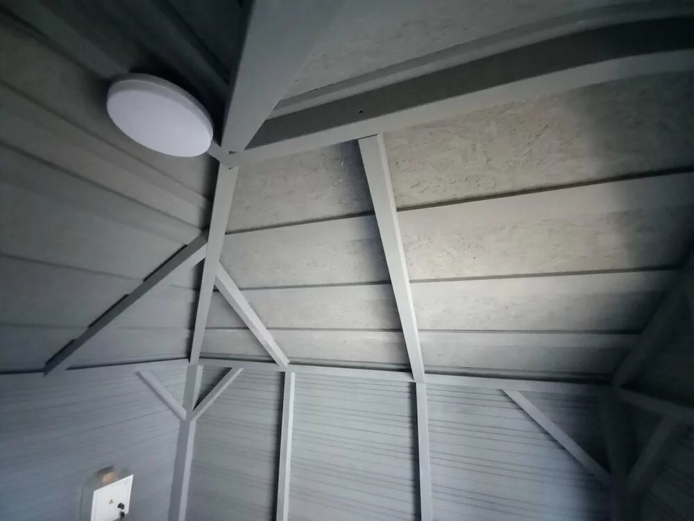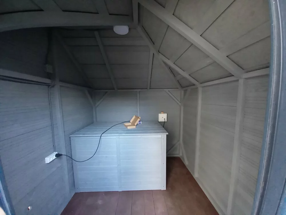 В хоз блоці присутня електрика плафон та розетка.