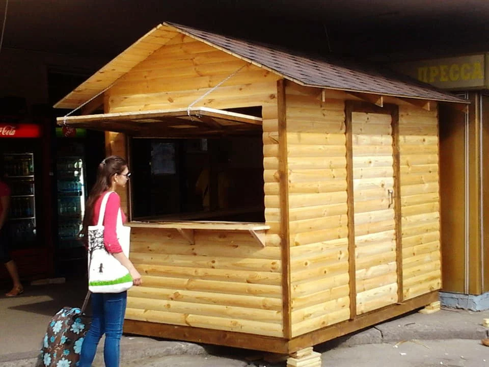 Торговые киоски для розничной торговли. Они используются на различных ярмарках, посвященных праздникам. Деревянные торговые киоски пользуются популярностью, ведь они имеют невысокую стоимость, легкие в плане монтажа и демонтажа.