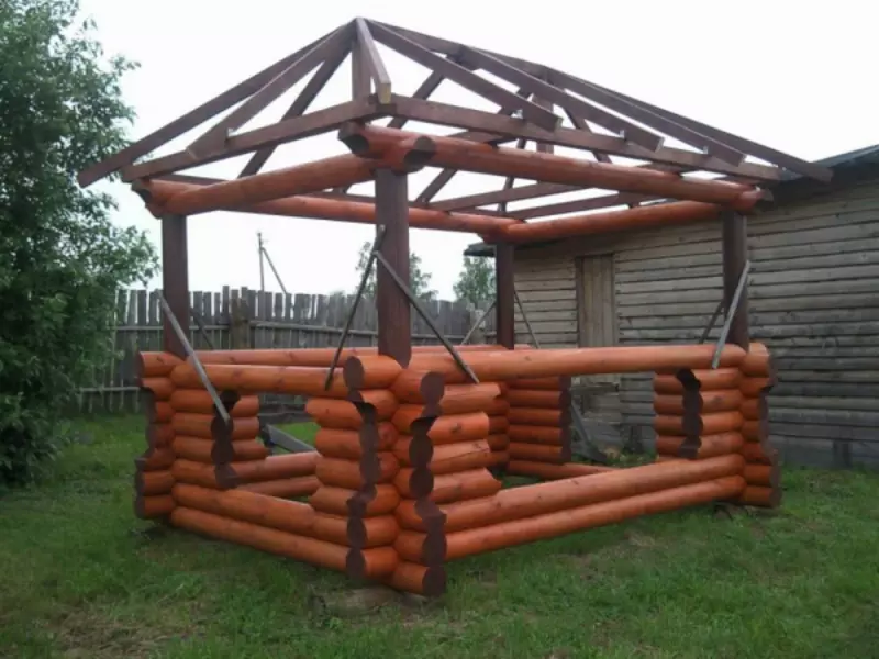 Прямоугольная беседка из оцилиндрованного бревна